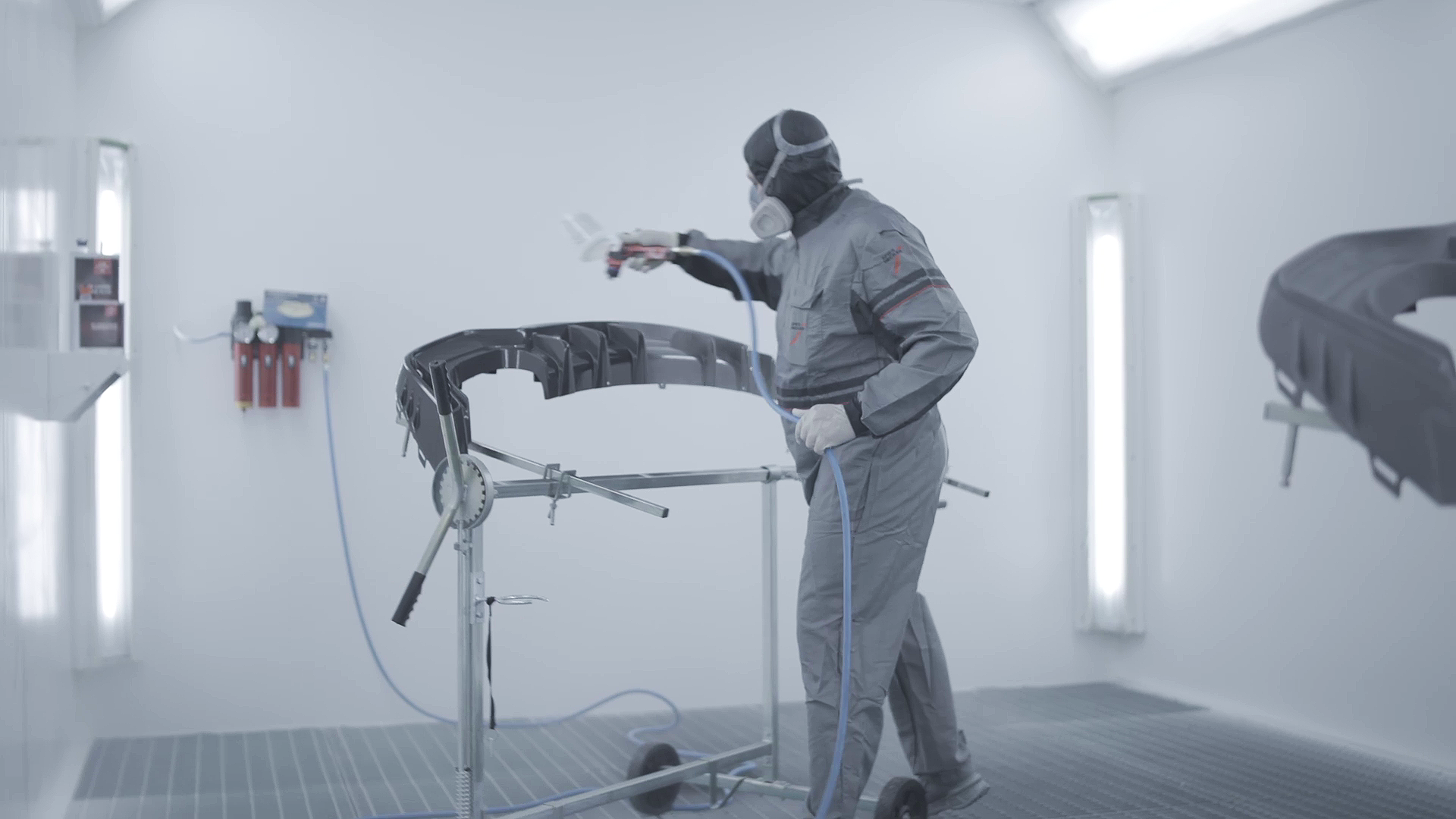 Nach dem Motto „One-Stop-Shop“ streben wir eine möglichst hohe Fertigungstiefe an und lackieren Bauteile nach Kundenanforderung. Ob dekorativ mit Klarlack als Sichtcarbon oder funktional, etwa zur galvanischen Trennung elektrisch leitfähiger Carbonfasern von korrosiven Metallen wie hochfestem Aluminium – wir beschichten Faserverbundbauteile inhouse.